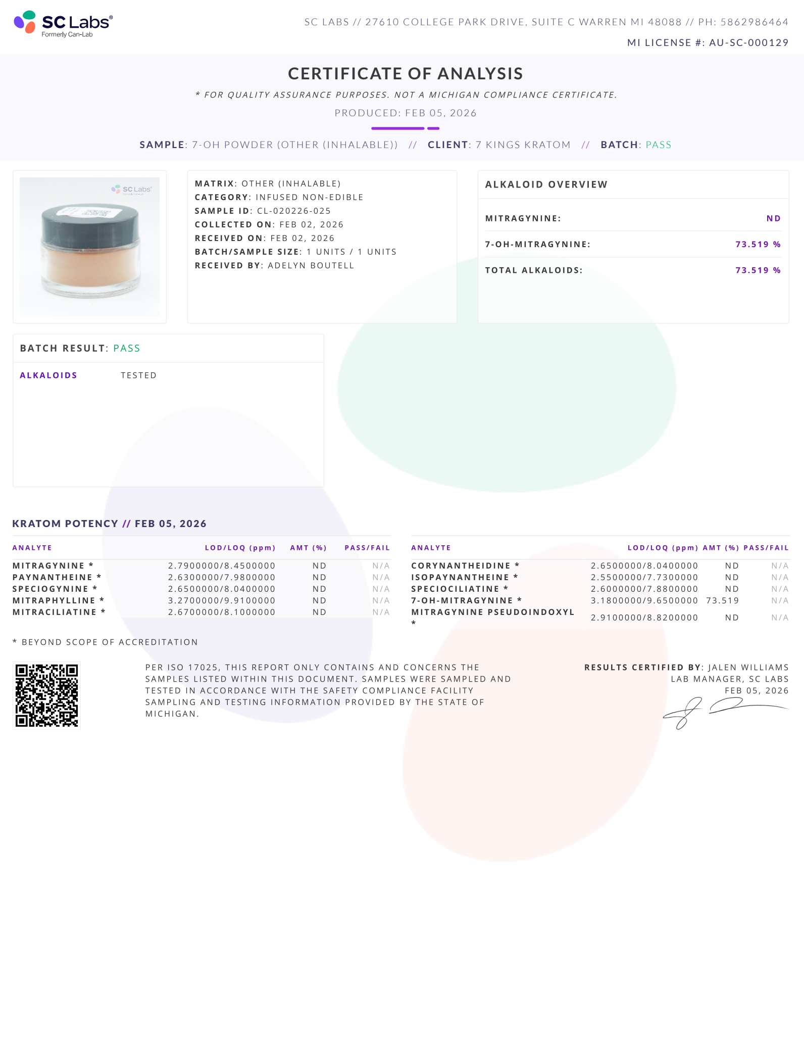 • Verifiable COA for current batch available in images.